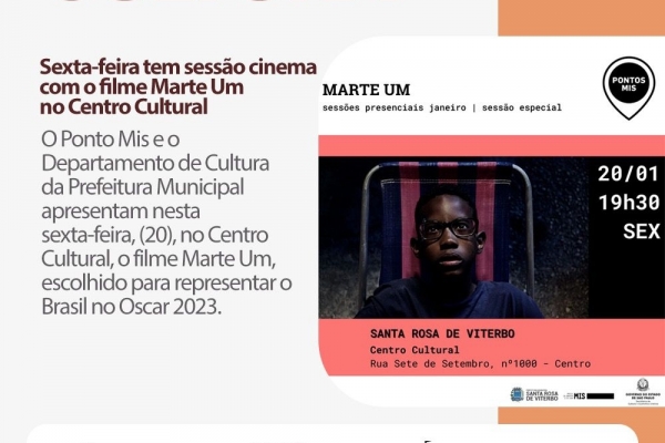 Sexta-feira tem sessão cinema com o filme Marte Um no Centro Cultural