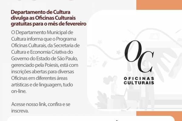 Departamento de Cultura divulga as Oficinas Culturais gratuitas para o mês de fevereiro