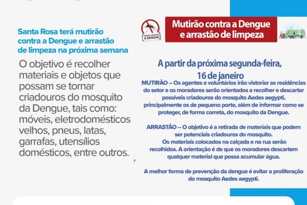 Santa Rosa terá mutirão contra a Dengue e arrastão de limpeza na próxima semana