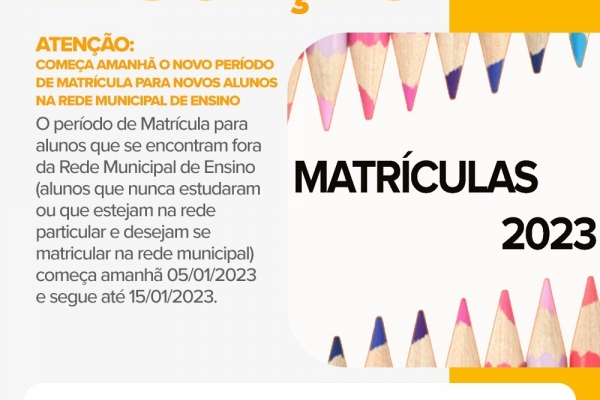 ATENÇÃO: Começa amanhã o novo período de Matrícula para novos alunos na Rede Municipal de Ensino