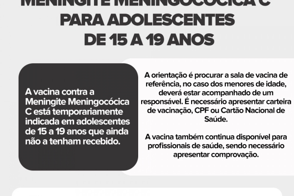 Vacina contra a Meningite Meningocócica C para adolescentes de 15 a 19 anos