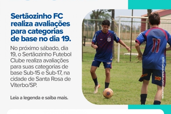 Sertãozinho FC realiza avaliações para categorias de base no dia 19