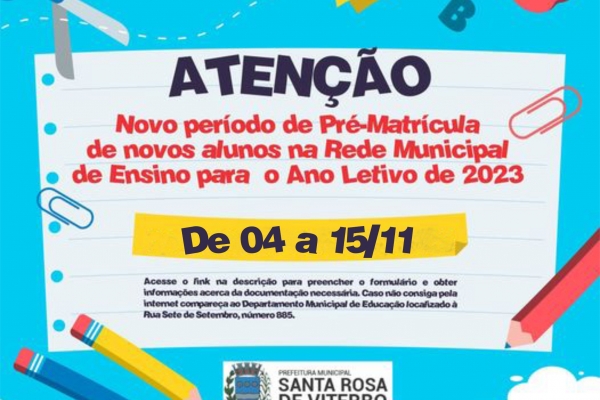 ATENÇÃO: Começa hoje o novo período de Matrícula para novos alunos na Rede Municipal de Ensino