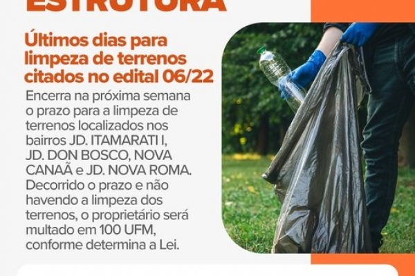 Últimos dias para limpeza de terrenos citados no edital 06/22