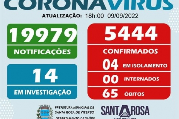 Acompanhe e fique informado da situação dos números do Coronavírus (COVID-19) em Santa Rosa de Viterbo.