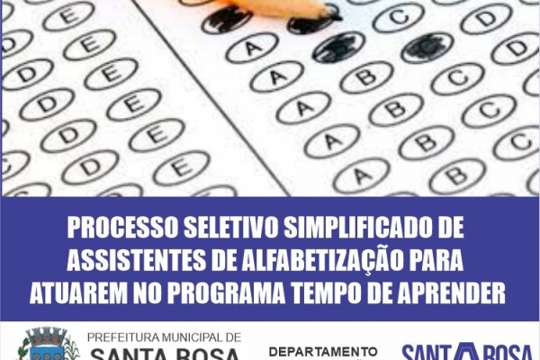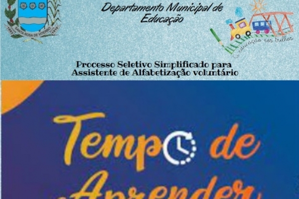 INSCRIÇÕES ABERTAS PARA O PROCESSO SELETIVO SIMPLIFICADO DE ASSISTENTE DE ALFABETIZAÇÃO DO PROGRAMA TEMPO DE APRENDER.