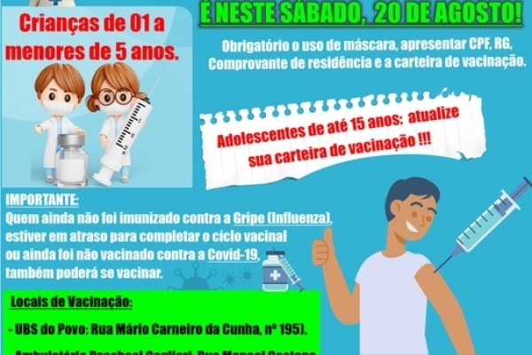 Campanha Nacional de Vacinação contra a Poliomielite e atualização das vacinas de rotina !!!