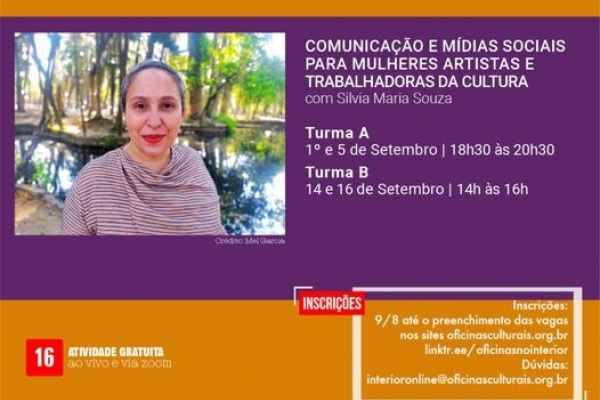 Oficina: COMUNICAÇÃO E MÍDIAS SOCIAIS PARA MULHERES ARTISTAS E TRABALHADORAS DA CULTURA.