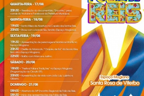 Segue a Programação do 34º Encontro Regional de Folias de Reis