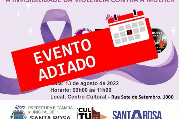 ATENÇÃO: A palestra sobre "A INVISIBILIDADE DA VIOLÊNCIA CONTRA A MULHER" não acontecerá mais neste sábado. Em breve div