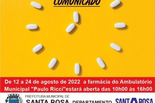 Atenção: Horário especial na Farmácia do Ambulatório Paulo Ricci