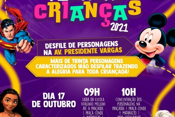 Santa Rosa terá desfile de personagens para comemorar o Dia das Crianças