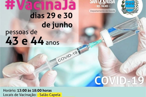 Programa de vacinação avança para pessoas de 43 e 44 anos