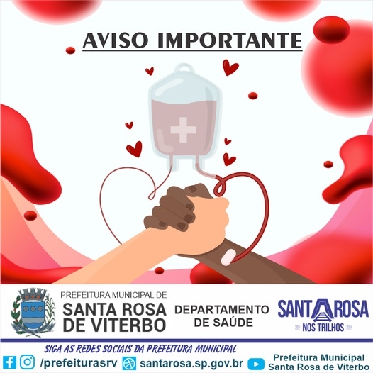 Neste sábado, 20 de agosto, das 07h00 às 12h00, acontecerá mais uma Campanha de Doação de Sangue. A ação, coordenada pela Prefeitura de Santa Rosa de Viterbo, através do Departamento Municipal de Saúde e o Hemocentro de Ribeirão Preto, ocorrerá na escola Maurilio de Oliveira, localizada à Rua Efren Testa, número 39, bairro Cohab I.