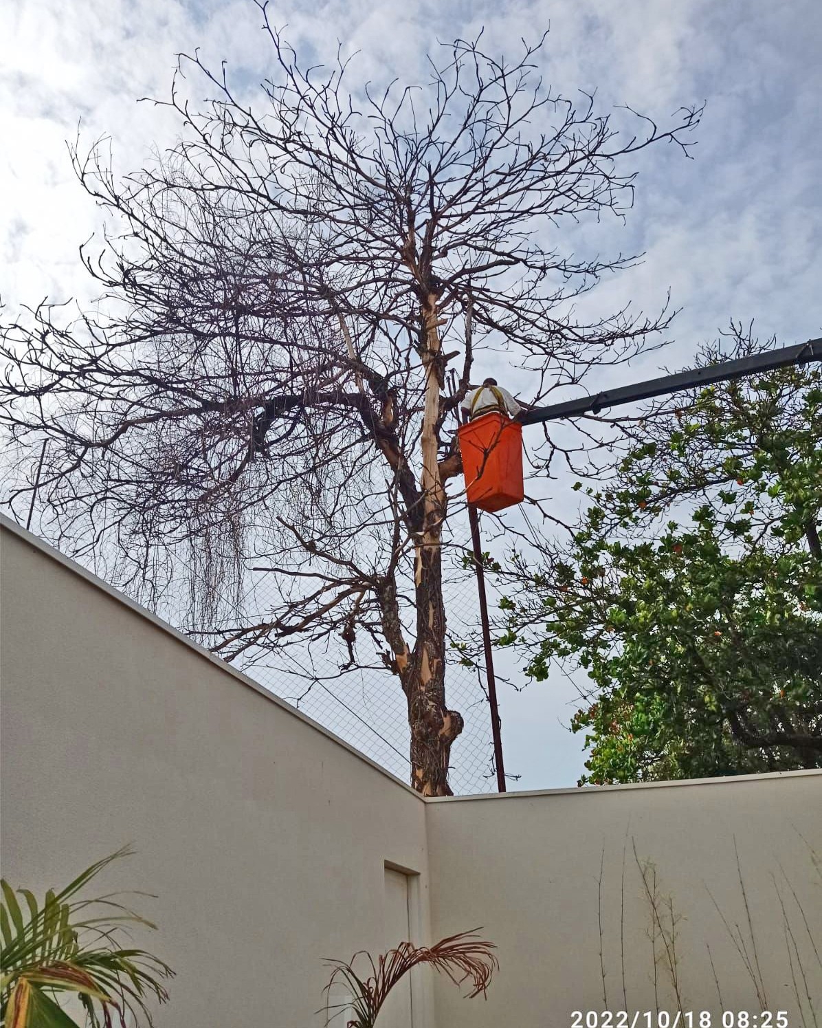 Acometidas por parasitas, quatro árvores da espécie Sete Copas, que estavam secas e doentes, tiveram que ser removidas do Estádio Municipal Rubens Bellize (Campão).