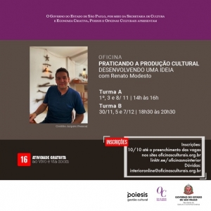 Público-alvo: Pessoas com alguma experiência em projetos culturais que desejem conhecer mais e se aprofundar na área.
