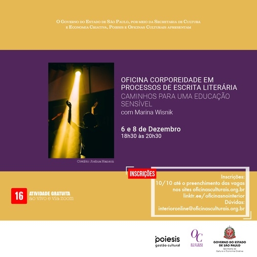 Datas e horários: 6 e 8/12 - 18h30 às 20h30