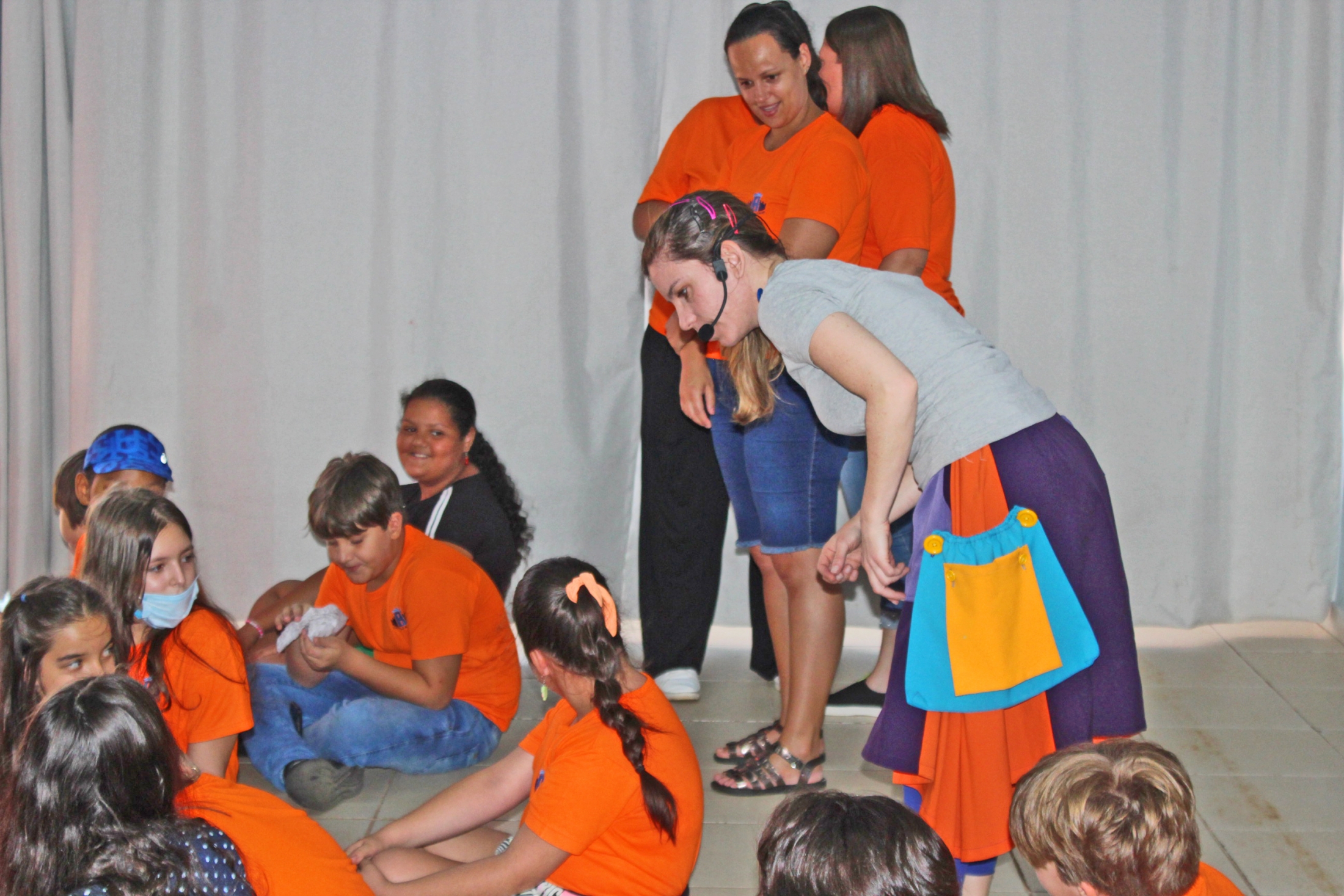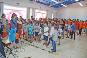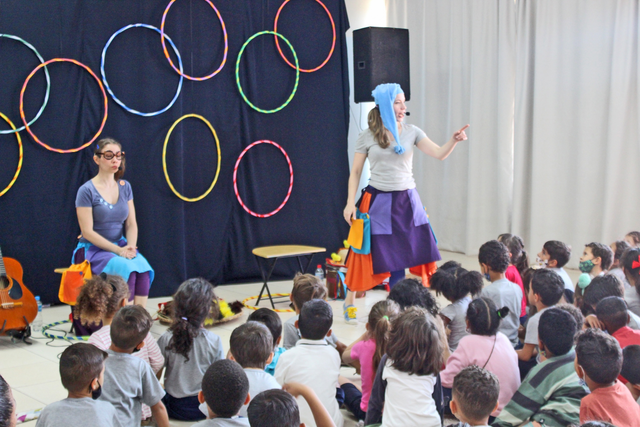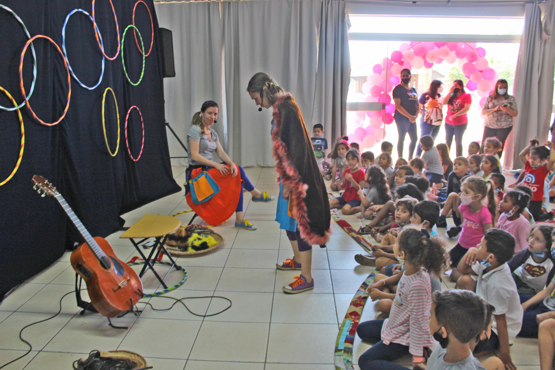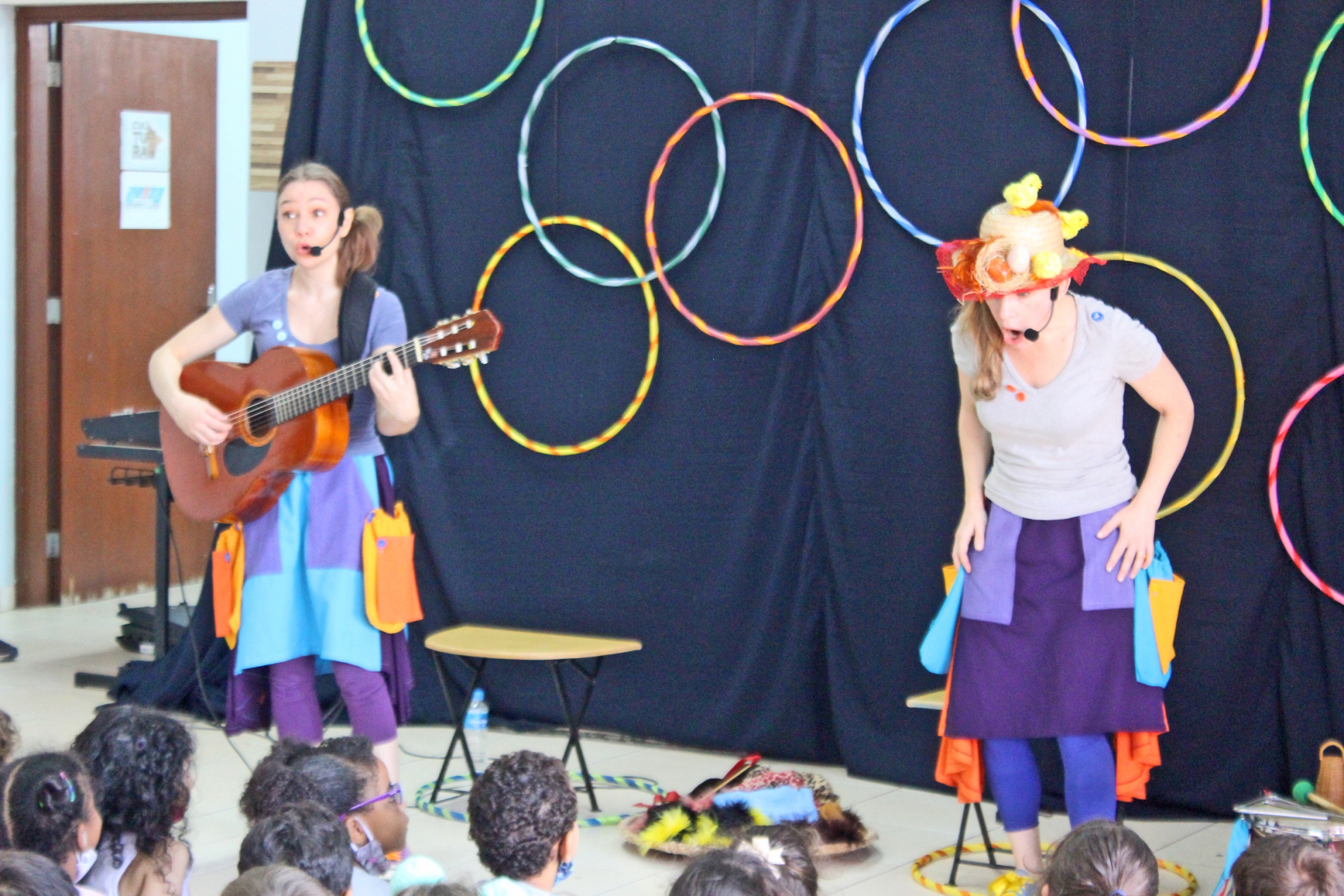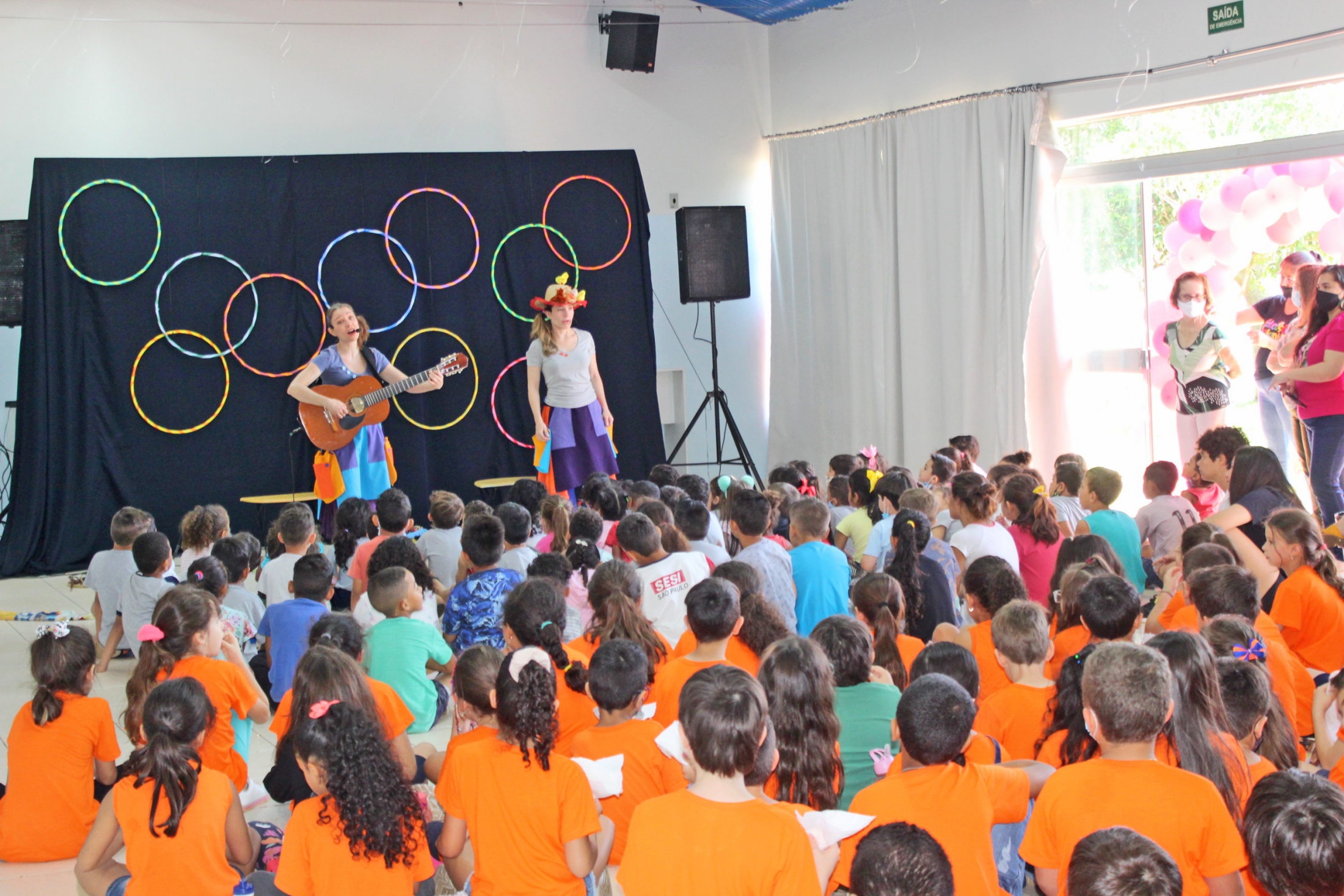 Uma manhã de arte, cultura e muita gargalhada. Foi o que o Espetáculo Histórias pra Cantar, atração do Circuito.SP apresentado em Santa Rosa de Viterbo na última quarta-feira, 26, proporcionou a dezenas de crianças no Centro Cultural. Super interativa, a peça das artistas Camila Cassis e Natália Grisi, da Cia Hora da História, uniu música, brincadeiras, parlendas e contação de histórias através de linguagens diferentes. Além de diversão gratuita, a meninada pôde saborear muita pipoca e algodão doce distribuídos para todos.