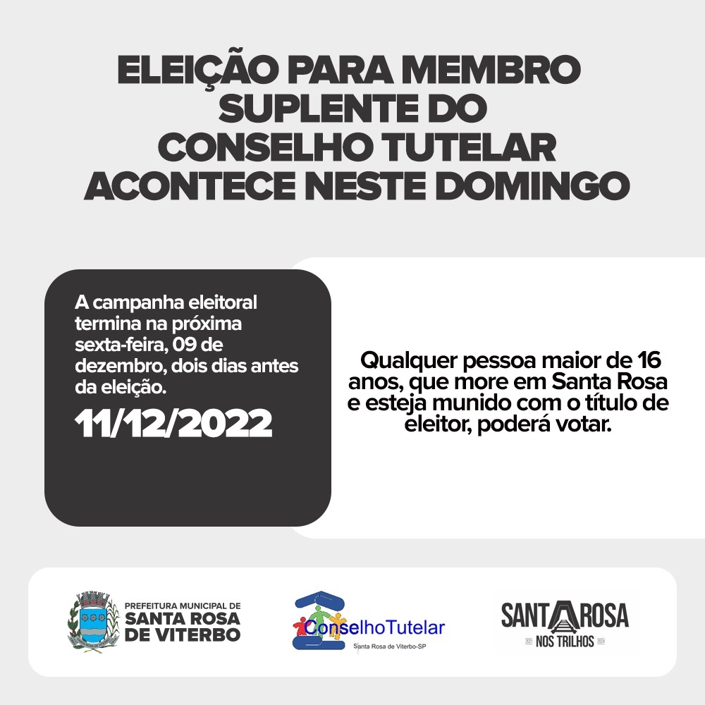 Acontece neste domingo,11 de dezembro, na escola Vergínio Melloni, a eleição para a escolha um novo Membro Suplente do Conselho Tutelar, mandato 2020-2024. Qualquer pessoa maior de 16 anos, que more em Santa Rosa e esteja munido com o título de eleitor, poderá votar em uma das três candidatas que estão na disputa: Ana Lúcia Rodrigues, Sandra Zerba e Sueli dos Santos.