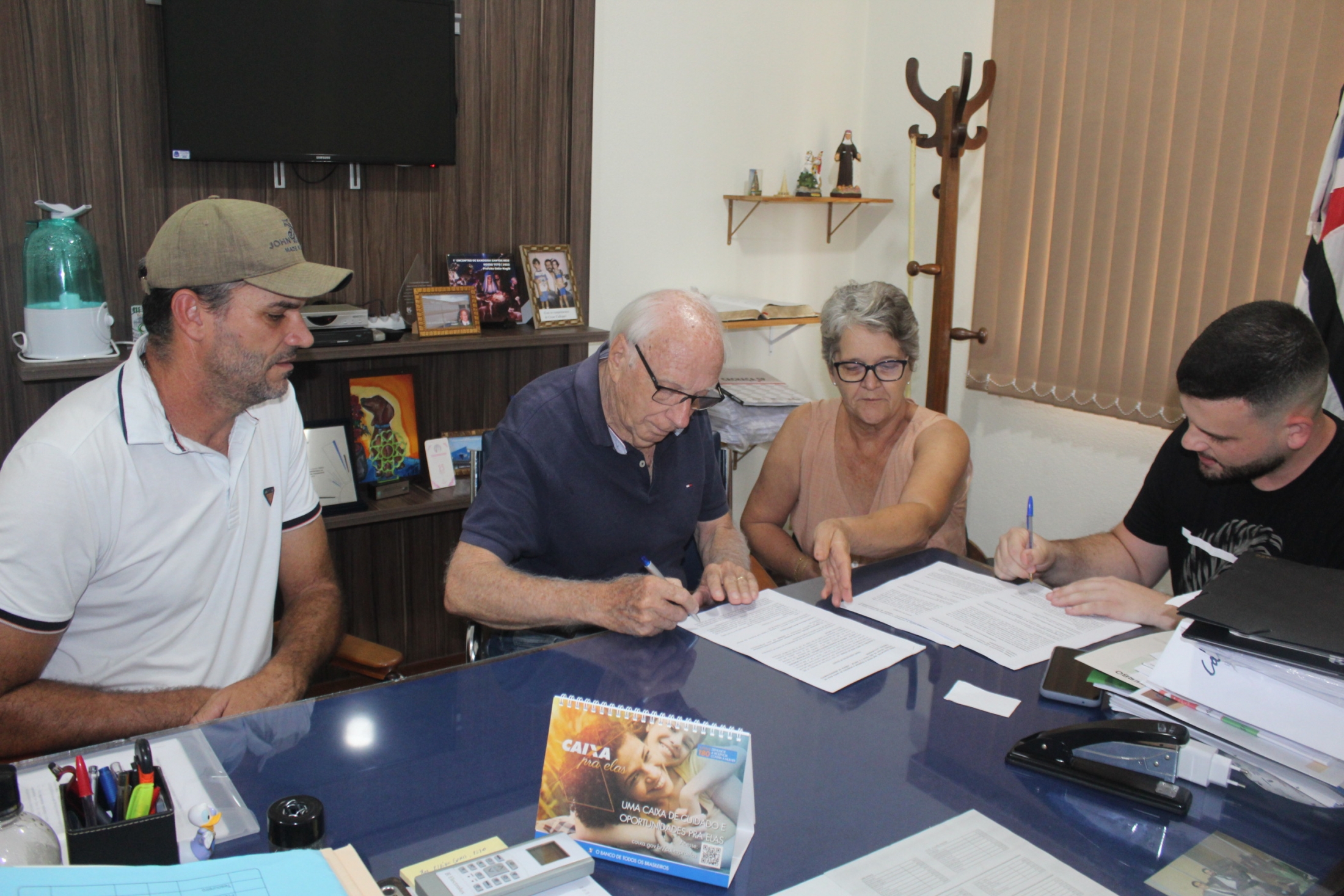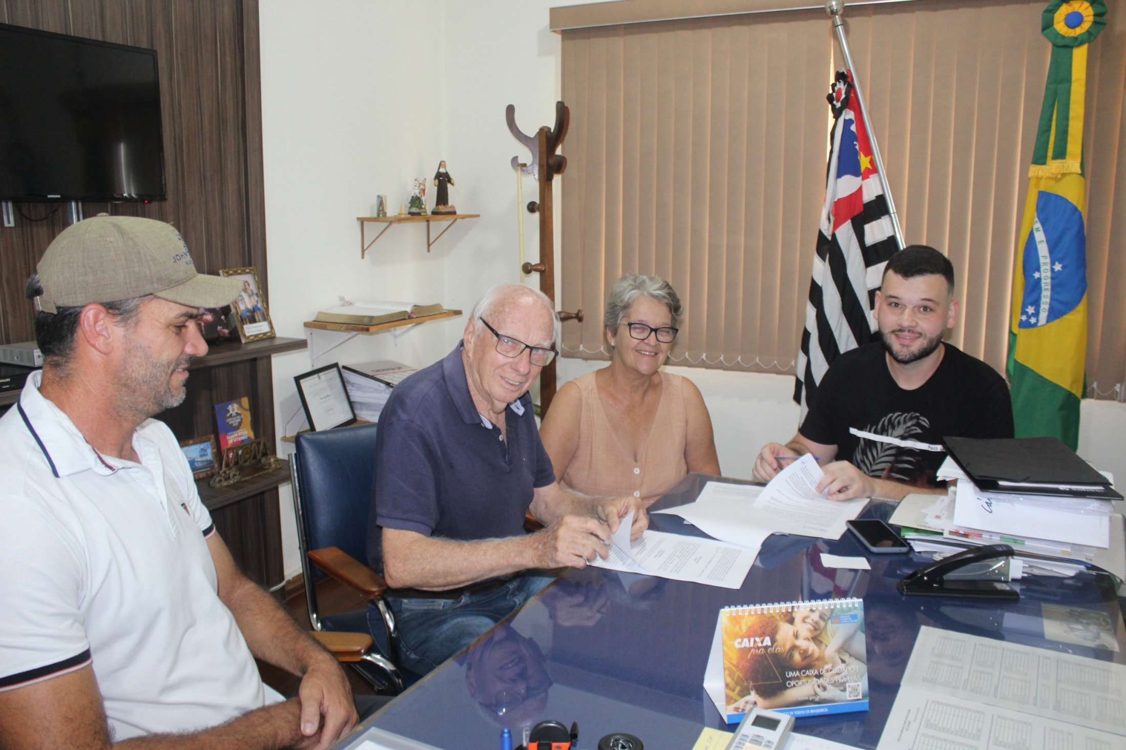 O Departamento Municipal de Cultura, Turismo, Esportes e Lazer da Prefeitura Municipal renovou, nesta semana, o convênio com a Agência de Desenvolvimento do Turismo da Alta Mogiana (ADETUR). Participaram do ato pela Prefeitura Municipal o Diretor José Paulo Orlando e a Chefe de Gabinete Maria Helena Mussolin. Representando a ADETUR estiveram o tesoureiro Rodrigo José da Silva e o presidente Antônio Sérgio Salvador.