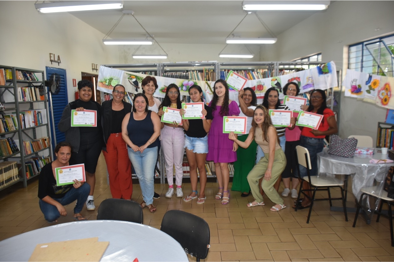 Participantes da Oficina de Pintura em Tecido receberam o certificado de conclusão de Curso