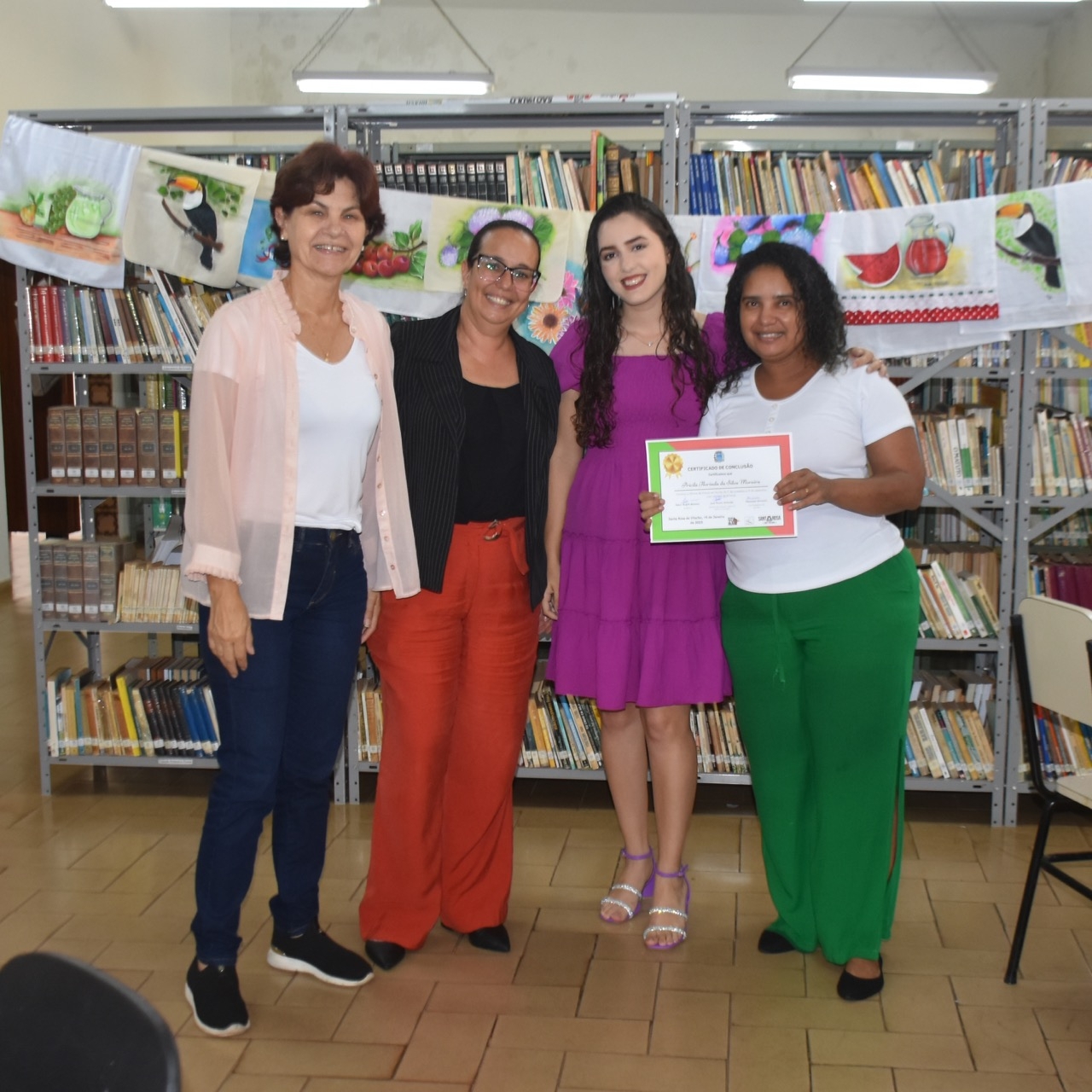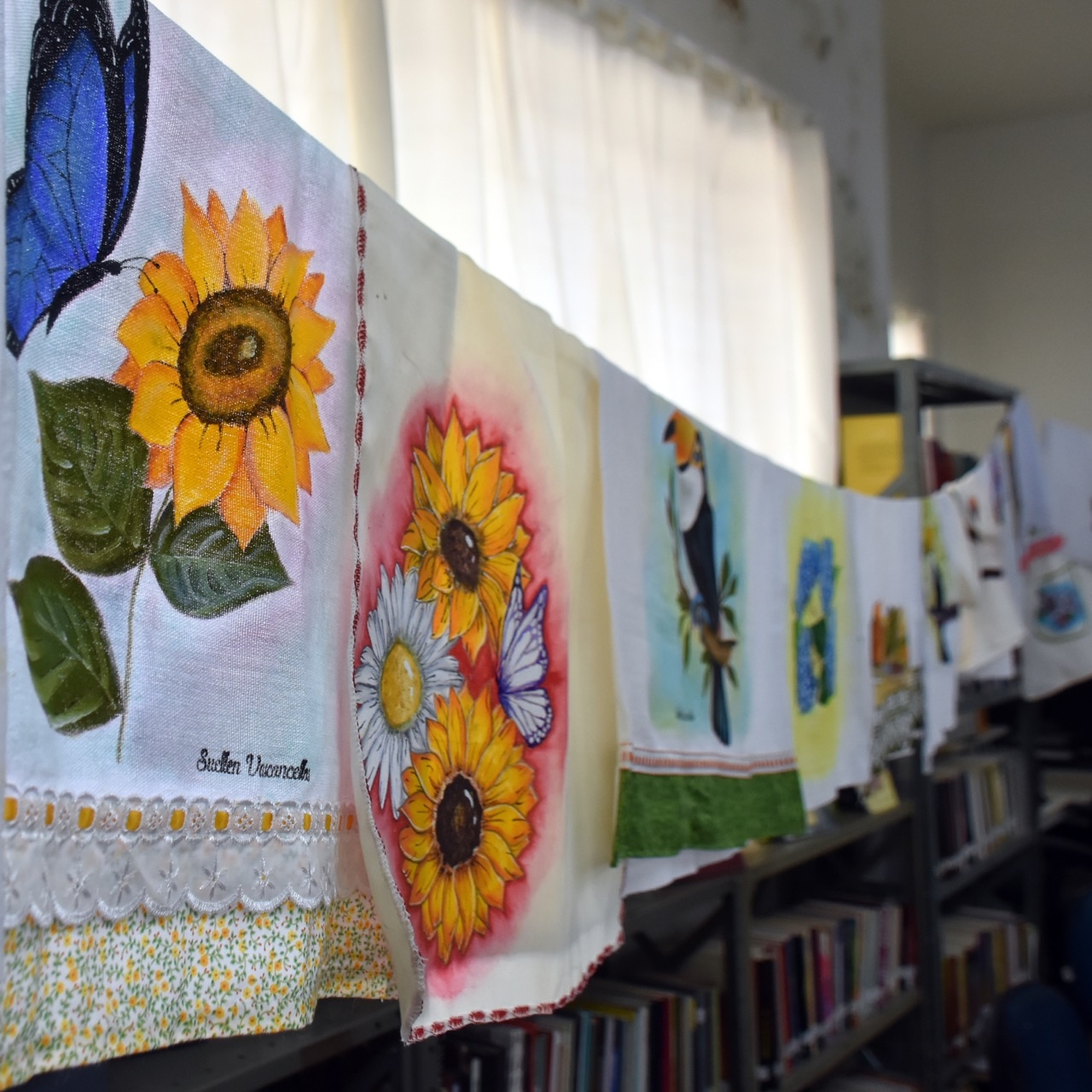 O Departamento Municipal de Cultura encerrou, no último dia 12, a Oficina de Pintura em Tecido, ministrada pela Instrutora Thawane Stefane de Oliveira. Ao todo foram 11 participantes aprendendo técnicas como o círculo cromático, luz, sombra e emoção na arte ao longo de 5 semanas, com início no dia 17 de novembro de 2022, na Biblioteca Municipal.