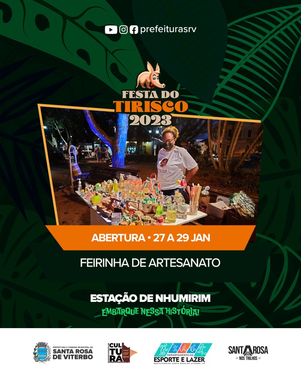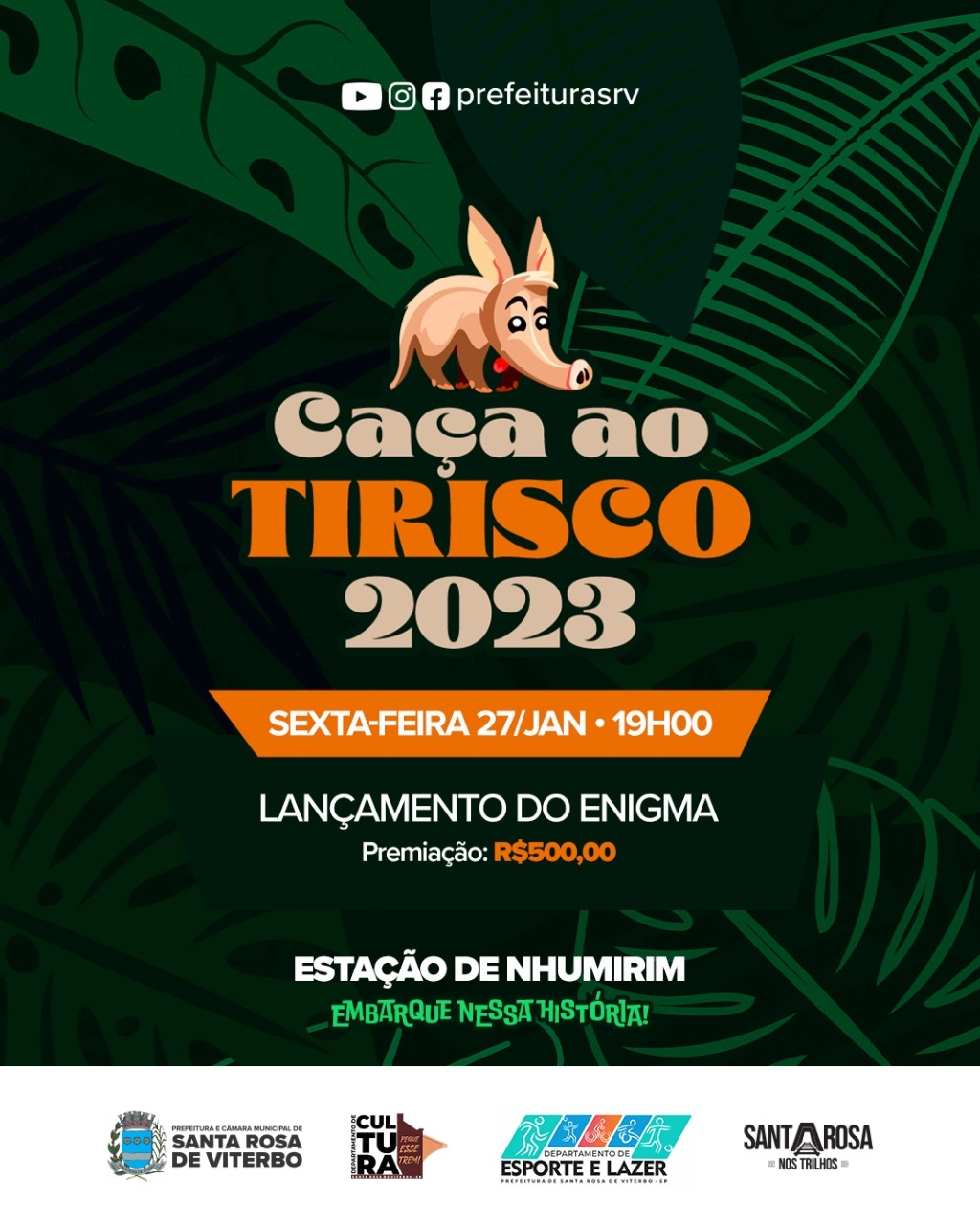 Com uma vasta programação de atrações, a 2ª edição da Festa do Tirisco começa, nesta sexta-feira, a partir das 19h00, na estação de Nhumirim. O evento terá shows musicais, exposições de fotos e pintura em telas, além da feirinha de artesanato, passeio ciclístico e prêmio de R$ 500, 00 para quem desvendar o enigma e encontrar o lendário e imaginário personagem do folclore santa-rosense.