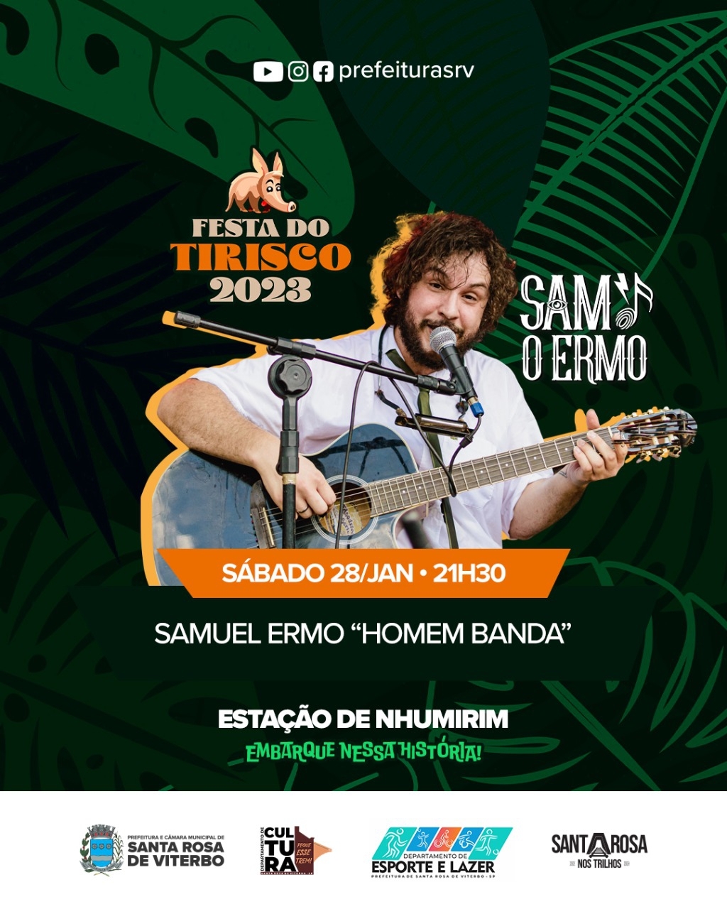 O segundo dia da Festa do Tirisco será de altas doses de Rock e demais ritmos, a começar com o cantor Samuel Ermo “Homem Banda” a partir das 18h30. Com versatilidade e admirável habilidade por cantar e tocar simultaneamente violão, bateria e gaita, Ermo apresenta um repertório que abrange os principais clássicos de bandas e artistas que marcaram época.