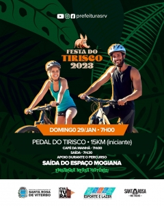Para quem gosta de pedalar, a Festa do Tirisco também incentiva a prática do esporte. Então, prepare a bike e participe do pedal que acontecerá na manhã deste domingo, 29.