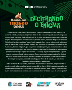 A Caça ao Tirisco deste ano apresentou uma novidade que a diferenciou da edição anterior: depois de decifrar o enigma, que foi publicado nas redes sociais da Prefeitura Municipal, os participantes deveriam procurar por – pelo menos - uma chave com que pudesse abrir o cadeado para libertar o bicho que estava “preso” em uma gaiola.