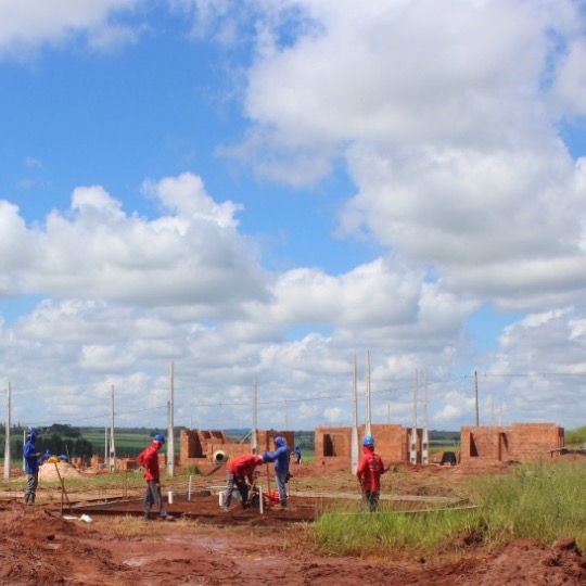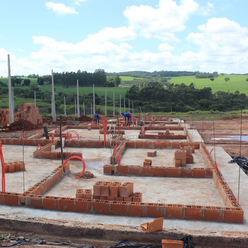 O tão sonhado e aguardado Conjunto Habitacional Padre Donizetti começa a ganhar forma. Algumas moradias já estão com as paredes levantadas e outras com as fundações do tipo radier em andamento ou já concretadas, prontas para receberem a alvenaria.