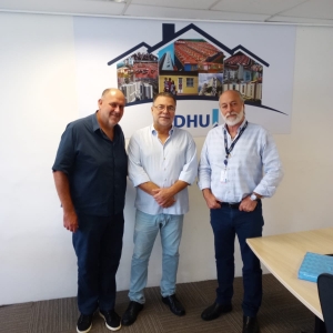 Para tornar mais ágil os serviços de terraplanagem, compactação do solo, implantação de água, esgoto, galeria de água pluvial, sarjetas e pavimentação, o Prefeito Omar Nagib esteve nesta semana na sede da CDHU - Companhia de Desenvolvimento Habitacional e Urbano em São Paulo, para falar com o Diretor Agnaldo Lopes Quintana. Também esteve presente o senhor Luciano, representante da HE-Engenharia, responsável pela construção das unidades habitacionais. “Solicitei agilidade nas obras de infraestrutura, visto que as construções das casas já começaram e a empresa Terra Forte está atrasada com o que cabe a ela. Além disso, temos que pensar também nas necessidades das pessoas que estão na espera de receberem a casa própria” explicou Omar.