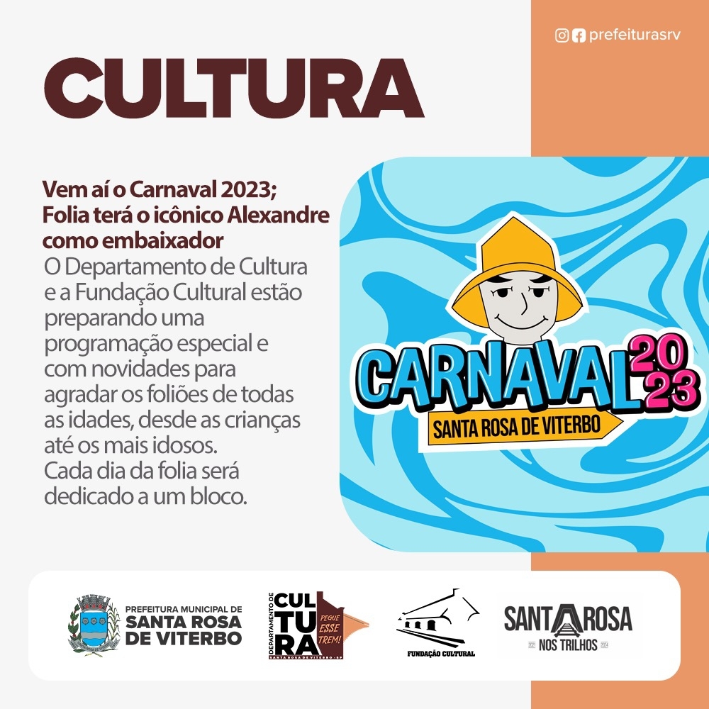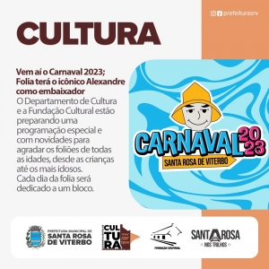 Após dois anos cancelada em razão da Pandemia da Covi-19, a tradicional festa popular voltará a ser realizada em grande estilo, entre os dias 17 e 21 de fevereiro, em Santa Rosa de Viterbo. O Departamento de Cultura e a Fundação Cultural estão preparando uma programação especial e com novidades para agradar os foliões de todas as idades, desde as crianças até os mais idosos.