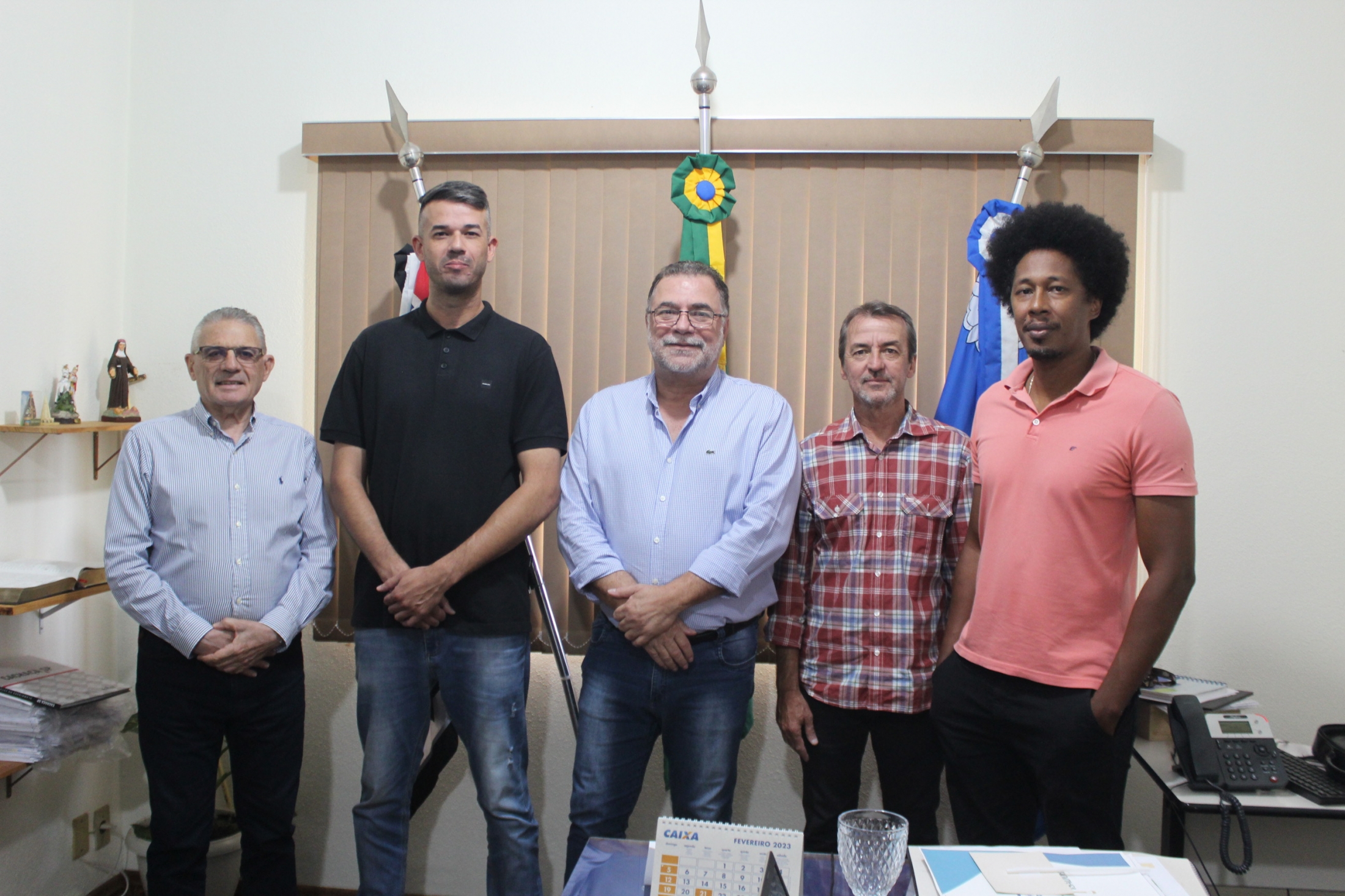 Na foto da esquerda para a direita: Arnaldo Cersossimo, Diretor de Desenvolvimento Econômico, Cláudio Pires, Diretor Administrativo da ETEC, Prefeito Omar Nagib, Marcos Ferri, Diretor de Educação e Romualdo Ferreira, Orientador do Polo.