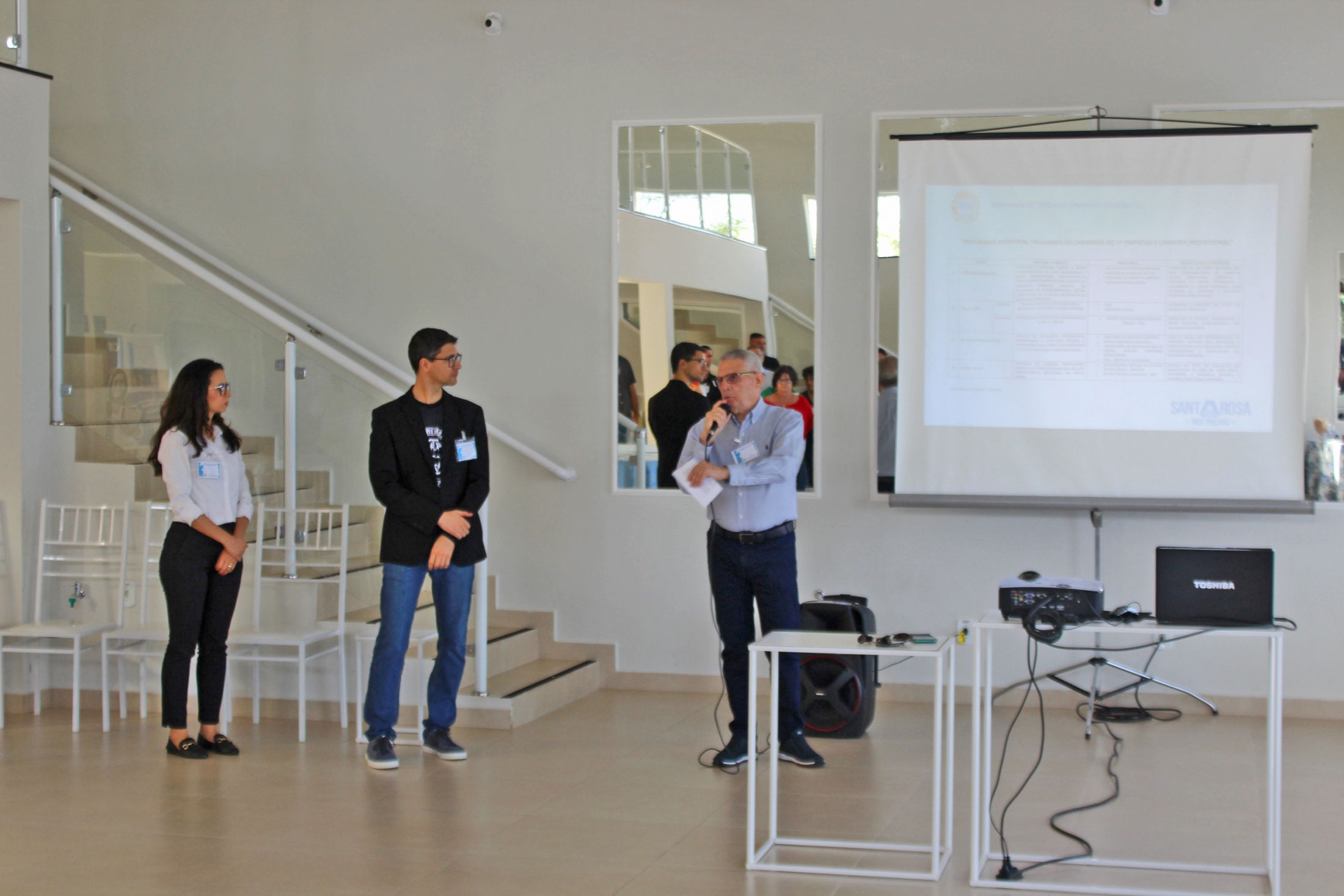 O Prefeito Omar Nabig ainda comentou sobre os esforços empreendidos pela Administração na busca por parcerias com o objetivo de capacitar e qualificar os munícipes para o mercado de trabalho. Lembrou ainda a recente conquista do Polo Univesp para Santa Rosa, instituição que será instalada no prédio da ETEC e que vai oferecer vários cursos de Educação Superior na modalidade a distância (EaD), totalmente gratuitos. “A melhor maneira de dar condição social para a população é gerar emprego e renda. A população espera isso, tanto da iniciativa privada quanto do poder público, que espera melhorar a qualidade de vida da sua população proporcionando saúde e educação de qualidade, cuidar dos espaços urbanos e fomentar a possibilidade de agregar renda. E o que espera o empresário: maior produtividade, melhoria da sua mão de obra, capacitação de sua mão de obra, melhoria na oferta de serviços e de produtos. Como vamos conseguir isso? Criamos a Diretoria de Desenvolvimento Econômico que está focando justamente nestes fatores. Em consonância com a ETEC, estamos agindo politicamente para que novos cursos venham para Santa Rosa, cursos de pequena duração e cursos que vocês entendam necessários para melhorar a mão de obra que vocês tem e, ao mesmo tempo, ampliar a gama de negócios que vocês oferecem. Estamos à disposição para o que der e vier. Acredito que a aproximação com as empresas é muito importante. A nossa ideia é essa” finalizou.