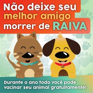 A vacinação anual de cães e gatos é a ação mais eficaz na prevenção da raiva animal e, consequentemente, humana. Desde o início de 2022, a Secretaria de Estado da Saúde suspendeu a Campanha de Vacinação que ocorria no mês de agosto de todos os anos, mantendo apenas a Vacinação contra a Raiva em posto fixo e posto estratégico que ocorrerá durante o ano todo.