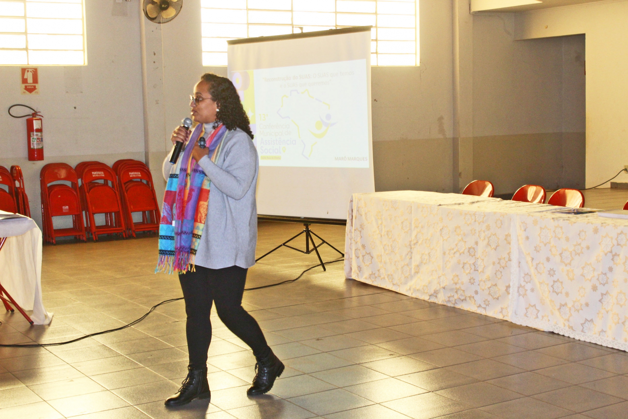 Em seguida a Assistente Social, Marô Marques, discorreu sobre a importância da construção de um sistema mais eficaz. “A 13ª Conferência municipal de Assistência Social tem como foco a reconstrução do SUAS, abordando tanto a realidade atual quanto a perspectiva de aprimoramento do sistema para garantir uma proteção social mais eficiente e justa, olhando para o futuro com esperança e determinação. A reconstrução do SUAS em 2023 é um chamado para fortalecermos ainda mais a Assistência Social em nosso país. É hora de unirmos nossas ideias, experiências e energia para construir um sistema mais resiliente, inclusivo e capaz de enfrentar os desafios que temos pela frente. Vamos juntos nessa jornada de transformação”.