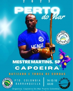 Apoiado pela Prefeitura Municipal, através da Diretoria de Desenvolvimento Social, o Mestre Martins embarca para Barranquilla, na Colômbia, nesta quarta-feira para participar de evento do Clube Esportivo H. Capoeira Do MAR, onde acontece cerimônia de batizado para iniciação de crianças e adultos na Capoeira e troca de cordas (graduação) para formar novos professores e mestres Capoeiristas.