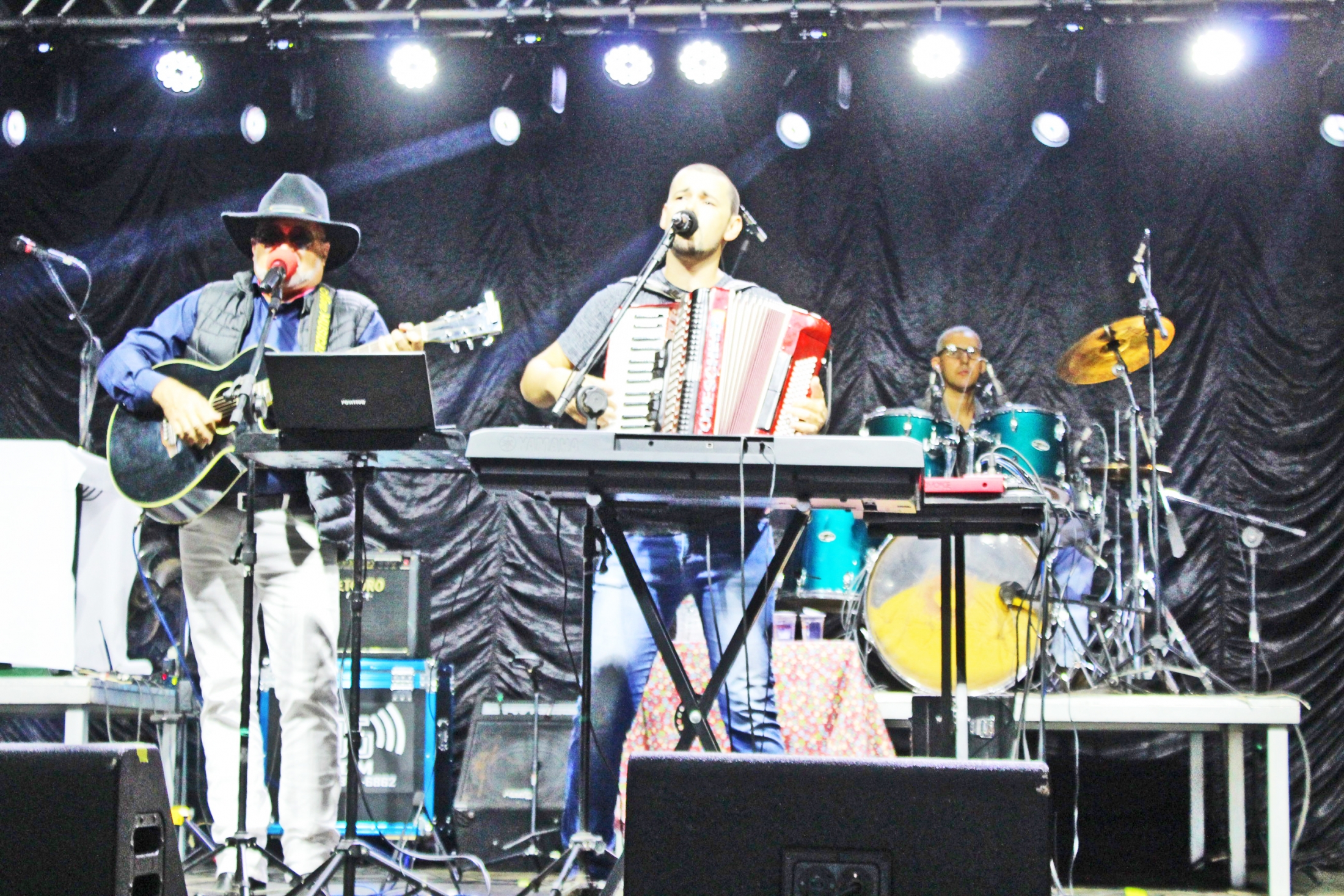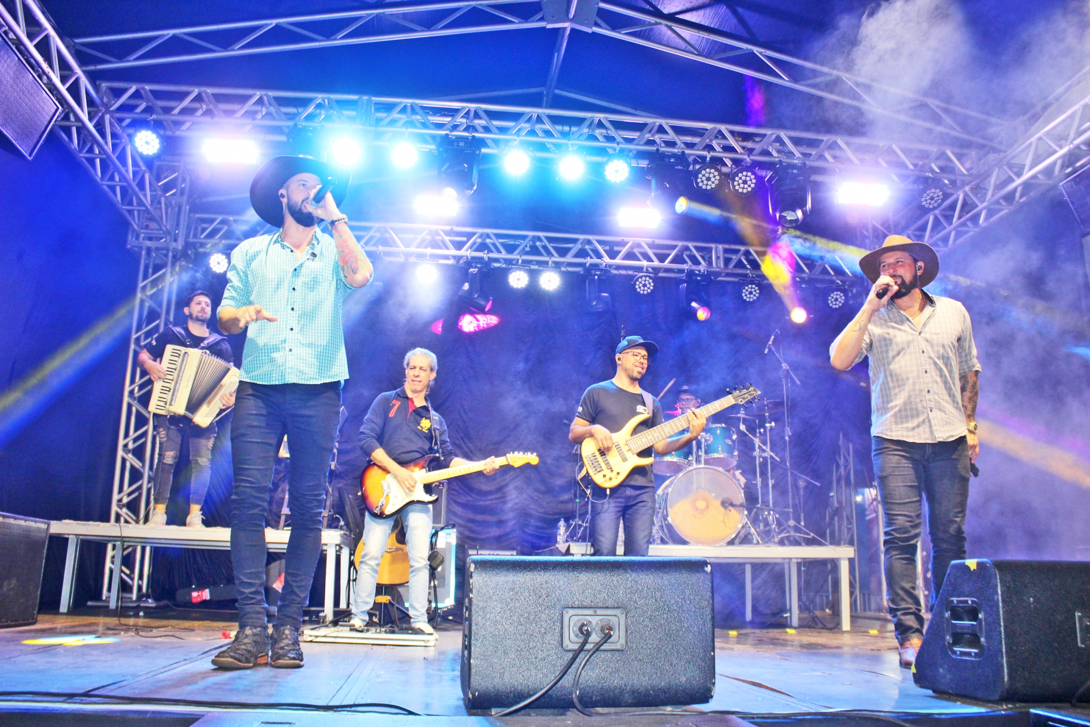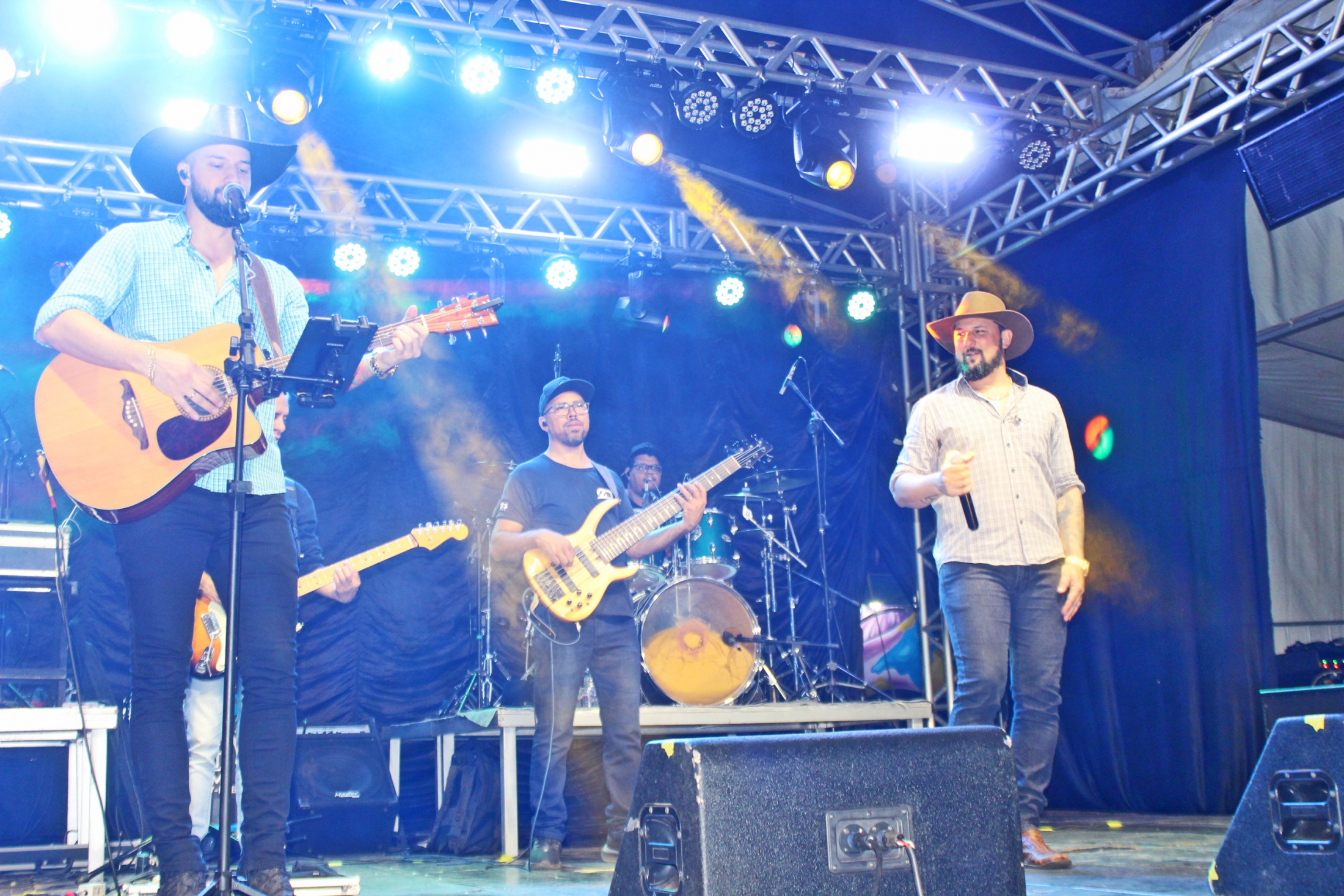 A noite começou com os santa-rosenses, Marcos e Justino, e fechou com dupla de Sertãozinho, Zé Lopes e Diego. Apresentando um repertório que foi do modão raiz até o sertanejo mais moderno, além de alguns rocks nacionais, as duplas animaram e divertiram o público.