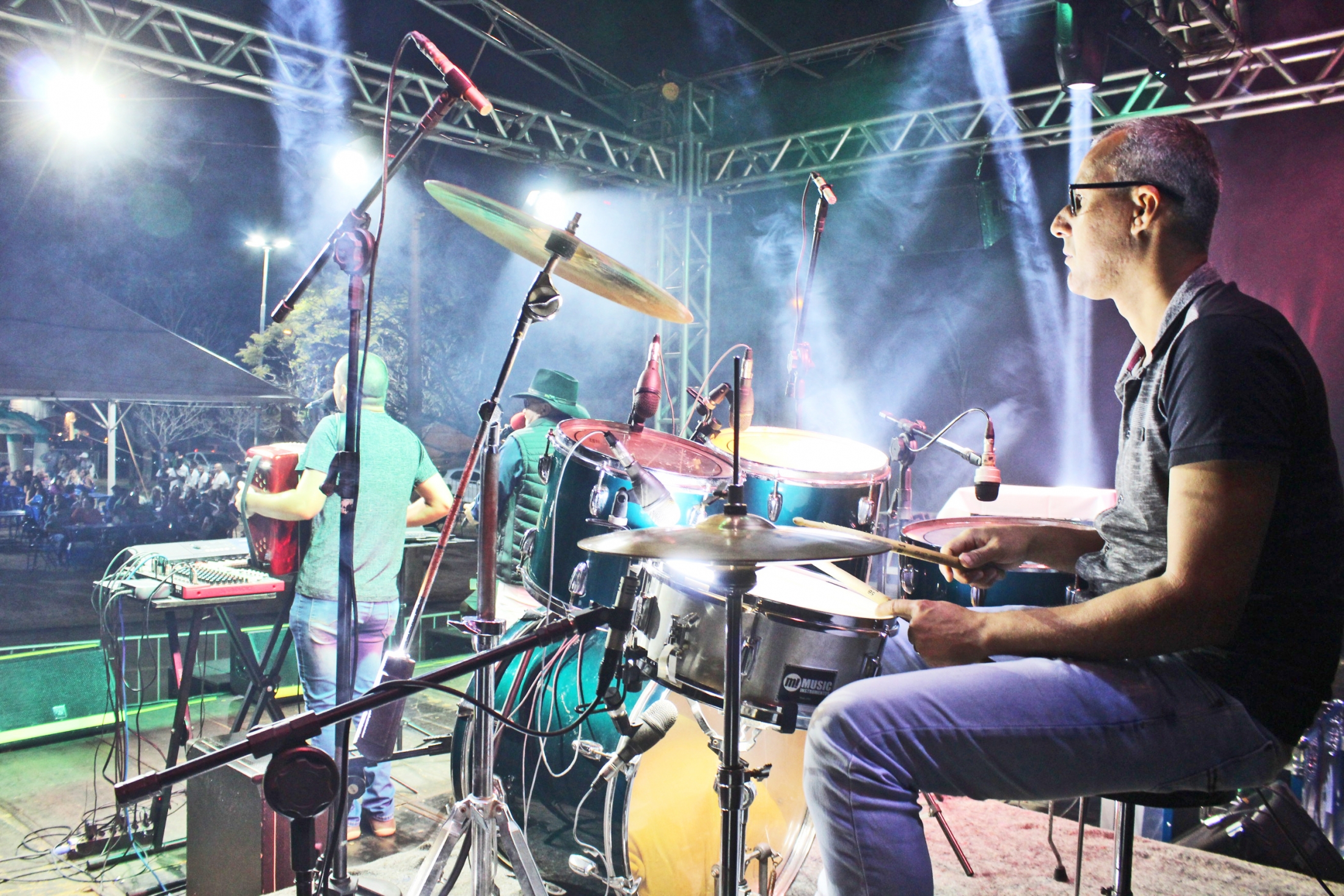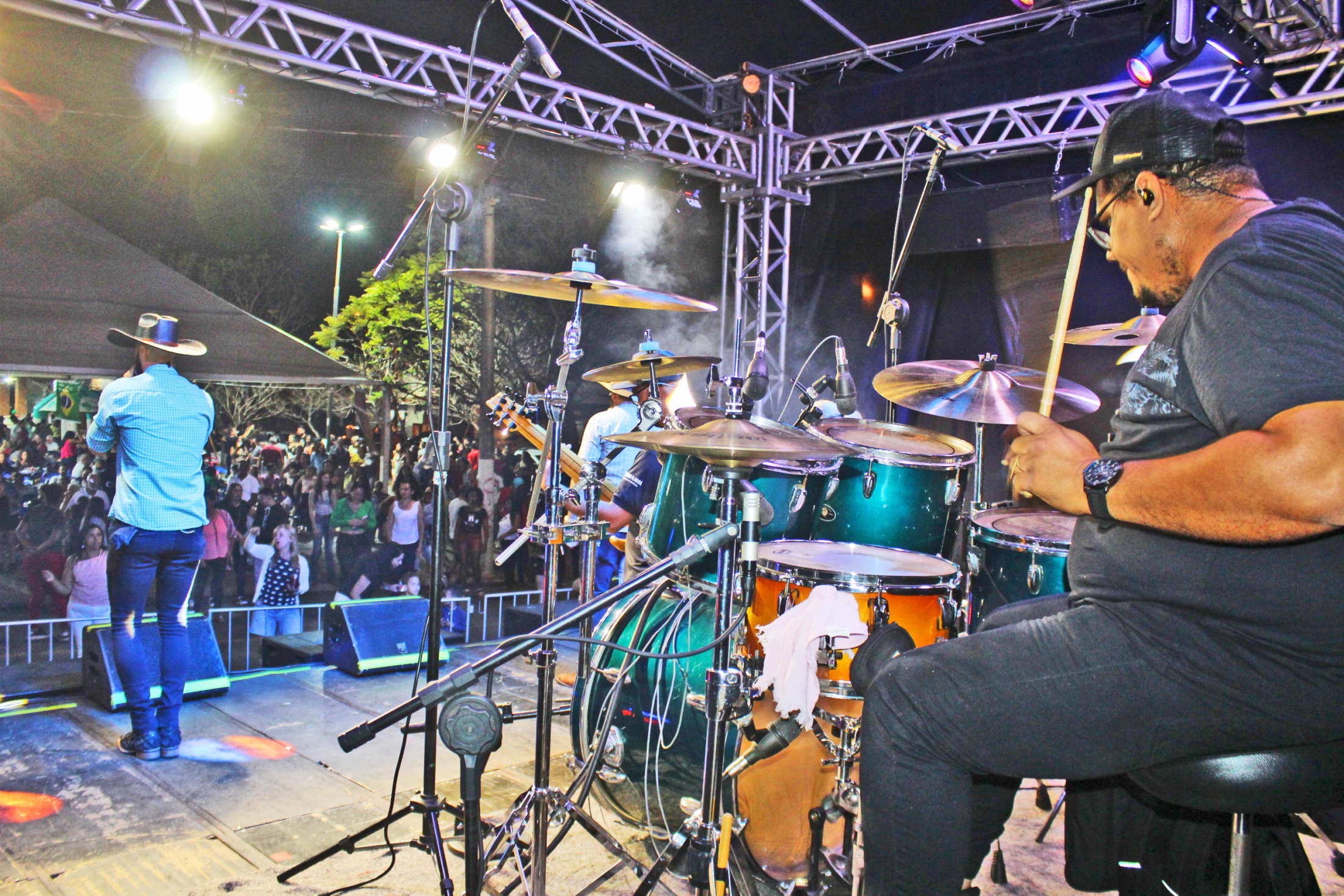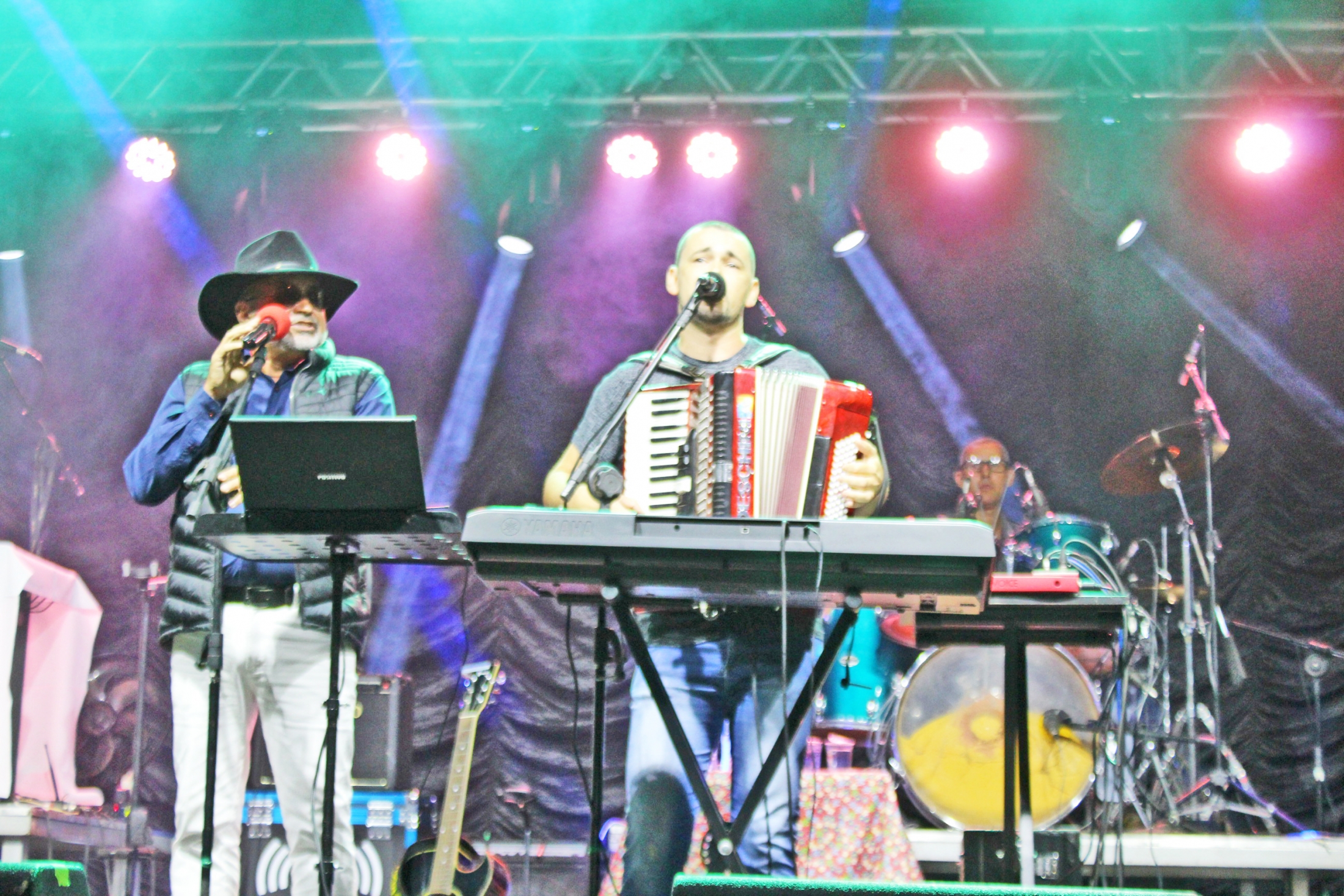 A noite começou com os santa-rosenses, Marcos e Justino, e fechou com dupla de Sertãozinho, Zé Lopes e Diego. Apresentando um repertório que foi do modão raiz até o sertanejo mais moderno, além de alguns rocks nacionais, as duplas animaram e divertiram o público.