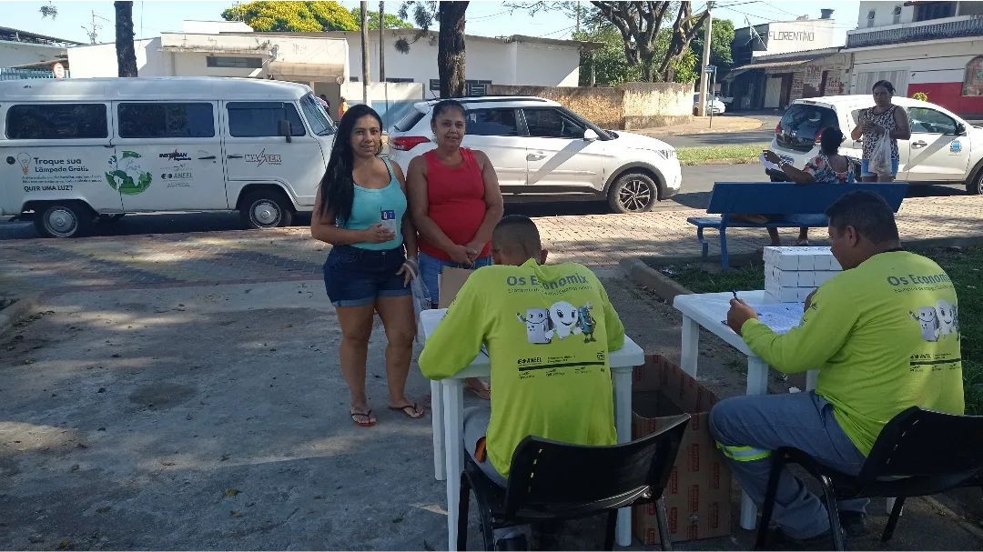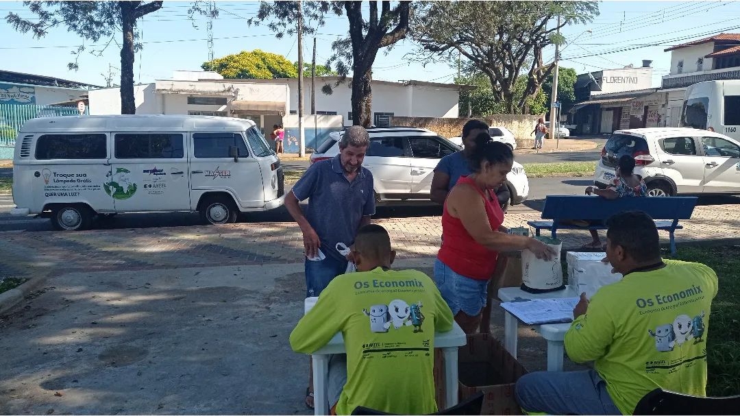 Venha até o ponto de troca com suas lâmpadas, sua conta de energia e seu documento com foto