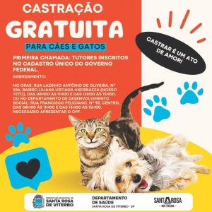Gradativamente os grupos de Tutores serão ampliados e amplamente divulgados através das redes oficiais da Prefeitura Municipal. A realização da Campanha de Castração é uma parceria entre a Prefeitura Municipal e a ABA - Associação Bicho Amigo/Santa Rosa de Viterbo. Apoio: Câmara Municipal.