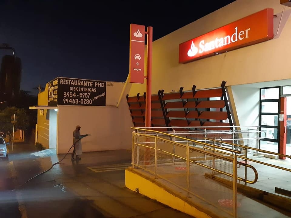 Ações de higienização estão acontecendo no início da noite e se estendendo pela madrugada. “Estamos seguindo determinação do prefeito para oferecermos maior eficácia, ampliação de locais a serem desinfectados com água e Hipoclorito de sódio e menos transtorno no trânsito da cidade e contato com as pessoas", informou Luiz Fernando da Silva, Diretor de Serviços Públicos.