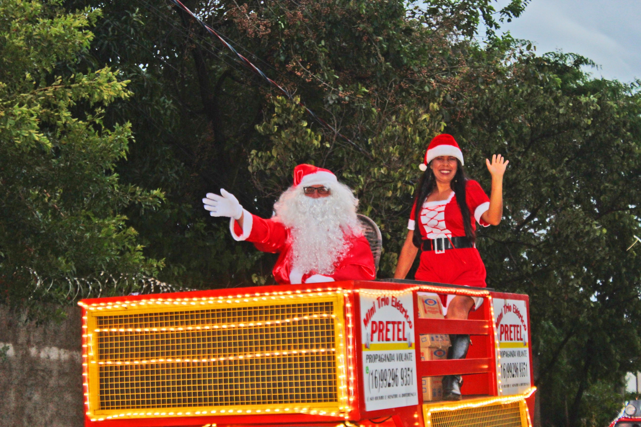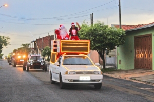 De cima de um “mini trio elétrico”, ao lado da Mamãe Noel e em cortejo organizado pelo Departamento de Cultura, Turismo, Esportes e Lazer da Prefeitura Municipal em parceria com clube Fidido OffRoad, o Papai Noel abriu ontem as comemorações do Natal 2023 em Santa Rosa de Viterbo. Ao som de canções natalinas e do ronco dos motores das gaiolas e dos jipes, o Bom Velhinho e a Mamãe Noel espalharam simpatia e amor por onde passaram, deixando com certeza, a vida daqueles que cruzaram seus caminhos mais feliz e alegre com o clima e o espírito do Natal. Toda a população, desde as crianças até os mais idosos, acenaram e interagiram ao avistá-los.