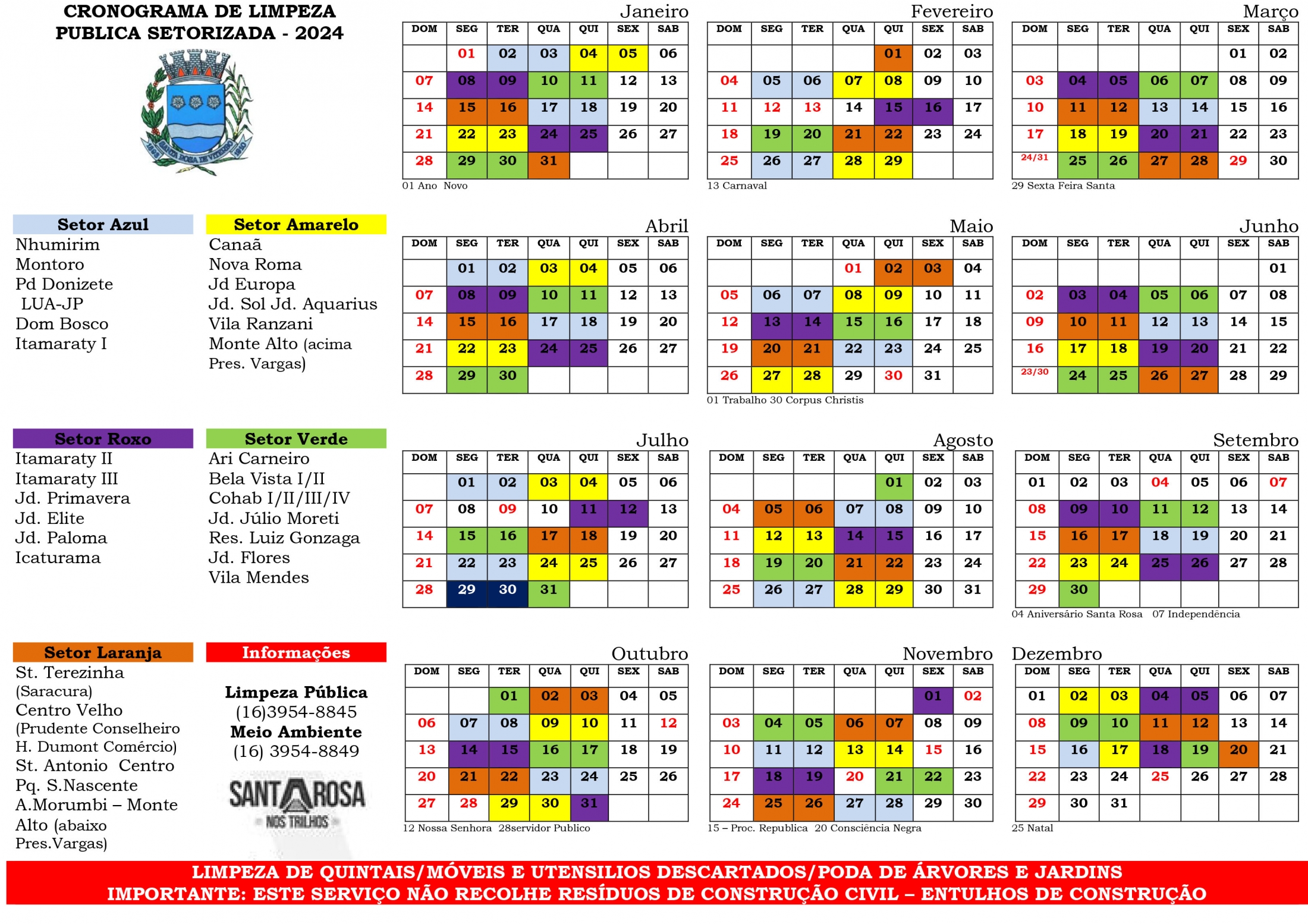 Cronograma de Limpeza Pública Setorizada para o ano de 2024