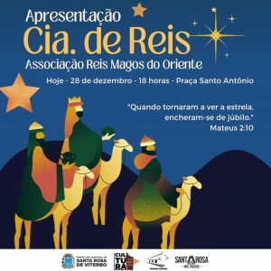Logo mais a Companhia de Reis Magos do Oriente se apresenta na Praça Santo Antônio.