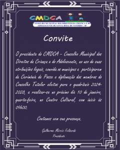 O convite do Conselho Municipal dos Direitos da Criança e do Adolescente se estende a toda a população.