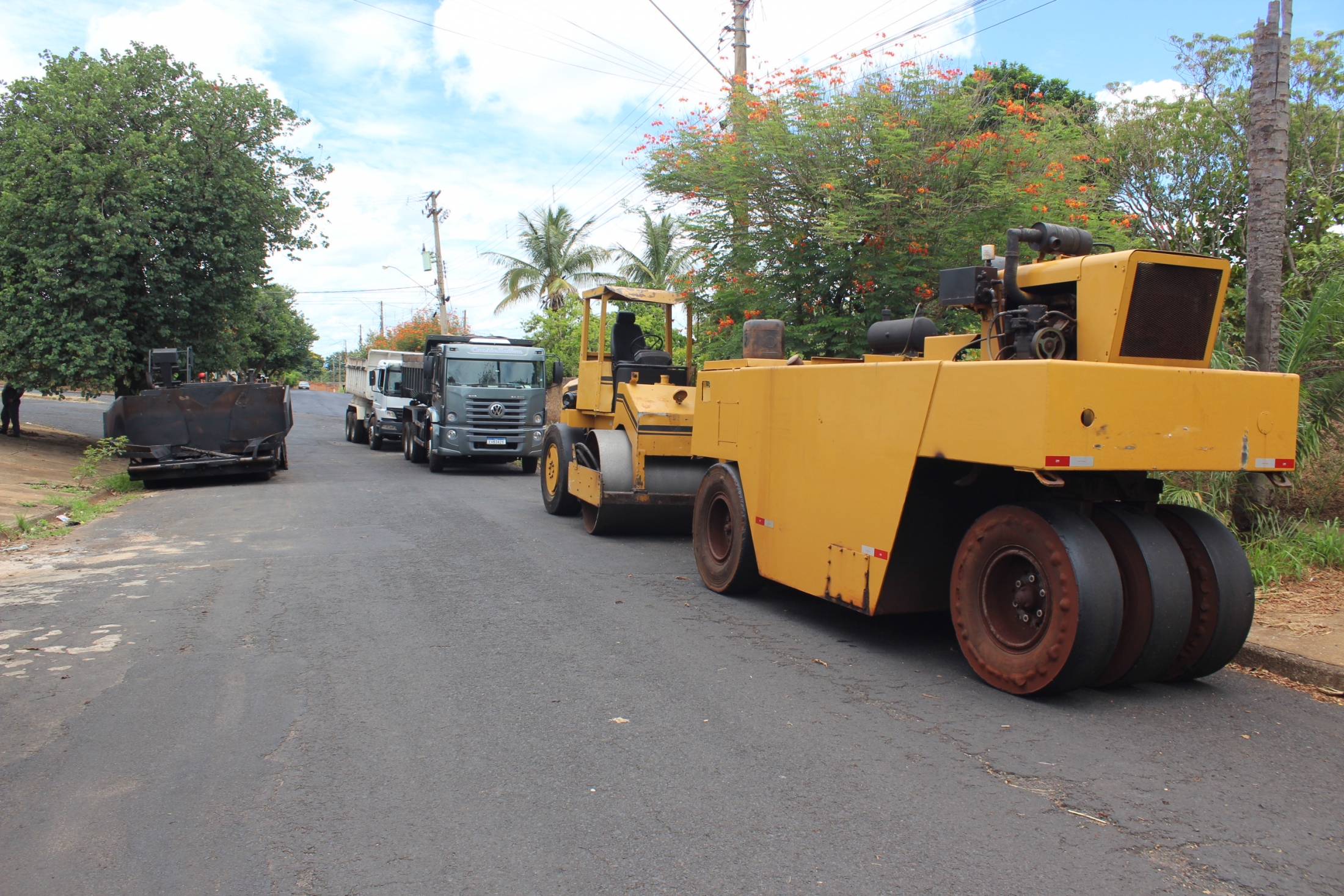 As primeiras vias a receberem o novo asfalto foram as Ruas Ângelo Alonso e Ângelo Mussolin, no Jardim das Flores.