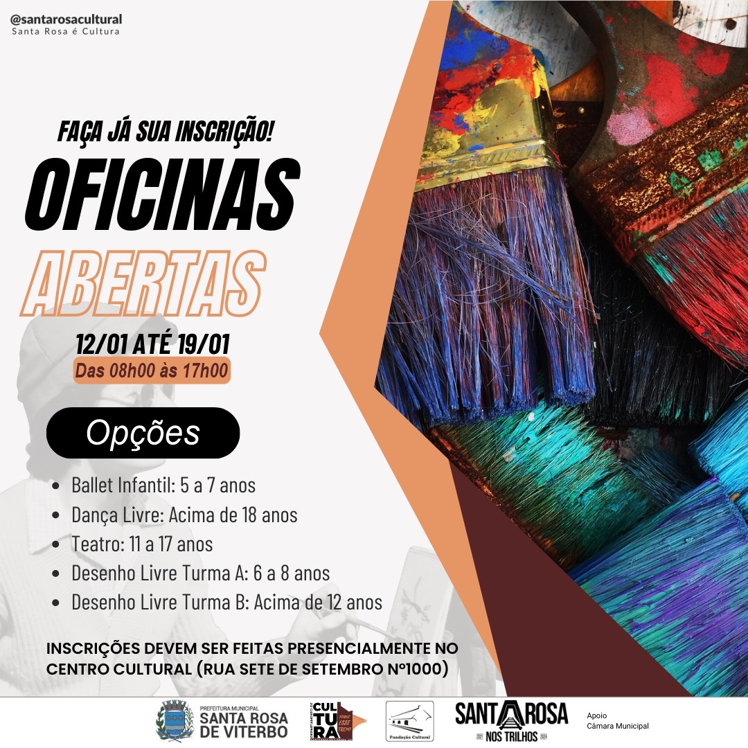 Departamento de Cultura e Fundação Cultural abrem inscrições para várias Oficinas