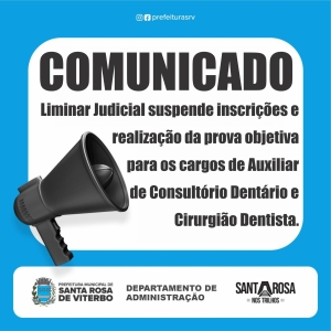 Liminar Judicial suspende inscrições e realização da prova objetiva para os cargos de Auxiliar de Consultório Dentário e Cirurgião Dentista